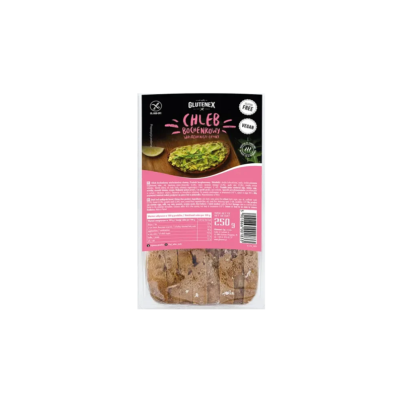 Složení: kukuřičný škrob, voda, bezlepkový pšeničný škrob, cukr, řepkový olej, slunečnicová semínka (2,3 %), lněná semínka (2,3 %), dýňová semínka (2,3 %), droždí, přírodní aroma, rostlinná vláknina, sůl, karobová mouka, zahušťovadlo: E 464, emulgátor: E 471.