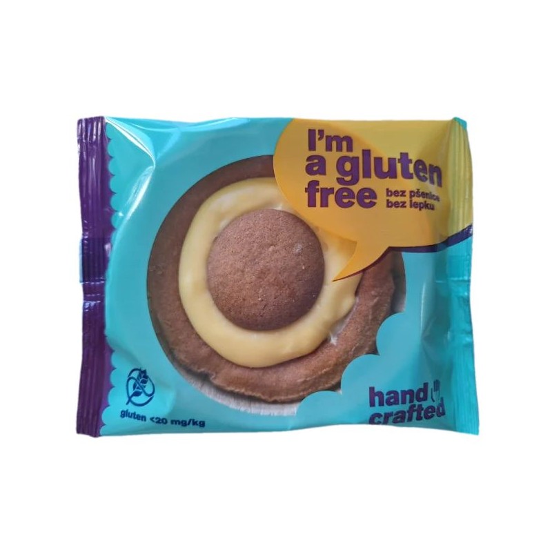 Složení: rýžová mouka, citrónová náplň 25% (cukr, nehydrogenovaný olej slunečnicový, sójový, řepkový, palmový, sušené mléko 10%, sušená syrovátka, laktóza, přírodní citrónová barviva, emulátor: sójový lecitin, přírodní barviva: karoteny, cukr, jablečná dřeň, tmavá poleva (cukr, úplně dehydrovaný rostliný tuk kokosový, kakaový prášek se sníženým obsahem tuku (16%), emulátor: slunečnicový lecitin, aróma: vanilín), vejce, činidlo: jedlá soda