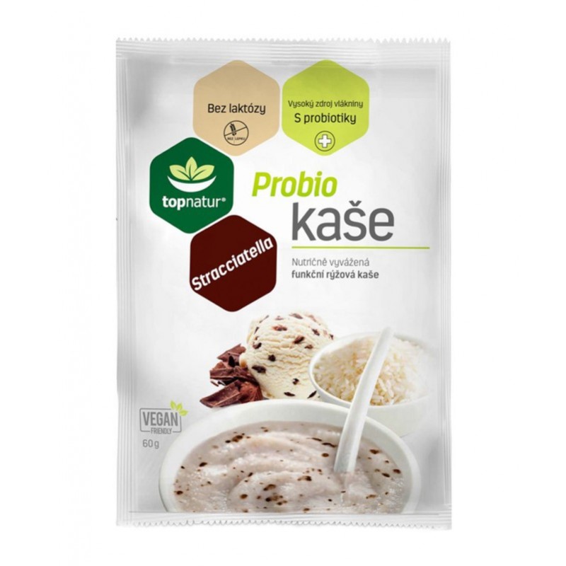 Ochutnejte probio kaši s příchutí stracciatella – tento termín je označením tradiční italské zmrzliny, jogurtu, ale také je to obecně příchuť krémově bílého pokrmu (směs mléka, cukru a smetany) s kousky hořké čokolády. Tento lahodný krém krásně zjemní chuť kaše, kterou doladí čokoláda. Hořká čokoláda má navíc velmi slušné zastoupení minerálů a stopových prvků. Nechybí ani menší dávka kofeinu a theobrominu se stimulačními účinky.