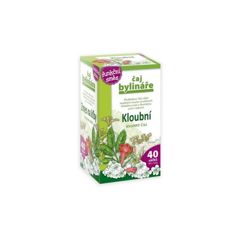 Čaj Váňa Kloubní n.s. 40x1.6g. Tato bylinná směs podporuje činnost pohybového ústrojí a kloubů. Napomáhá vyplavování nežádoucích látek z lidského organismu.Složení: jasan list, tužebník nať, harpagophytum procumbens kořen.Dávkování: 2 šálky za den.Balení: 40 x 1.6 g