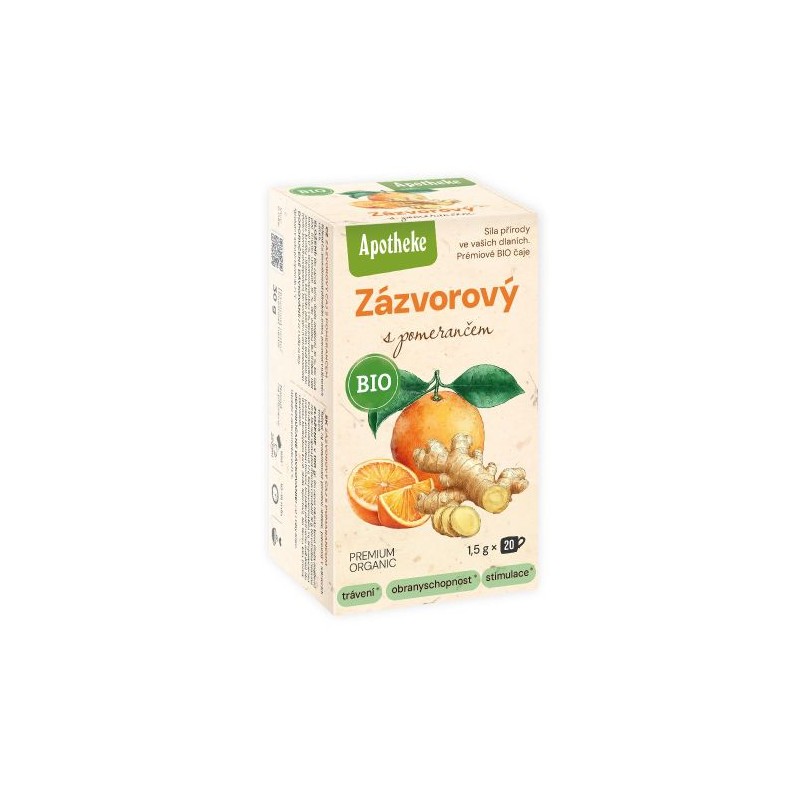 Bio čaj zázvor - pomeranč BIO SELECTION. Bio selection, 20 sáčků. Blíže o zázvoru čtěte zde.
